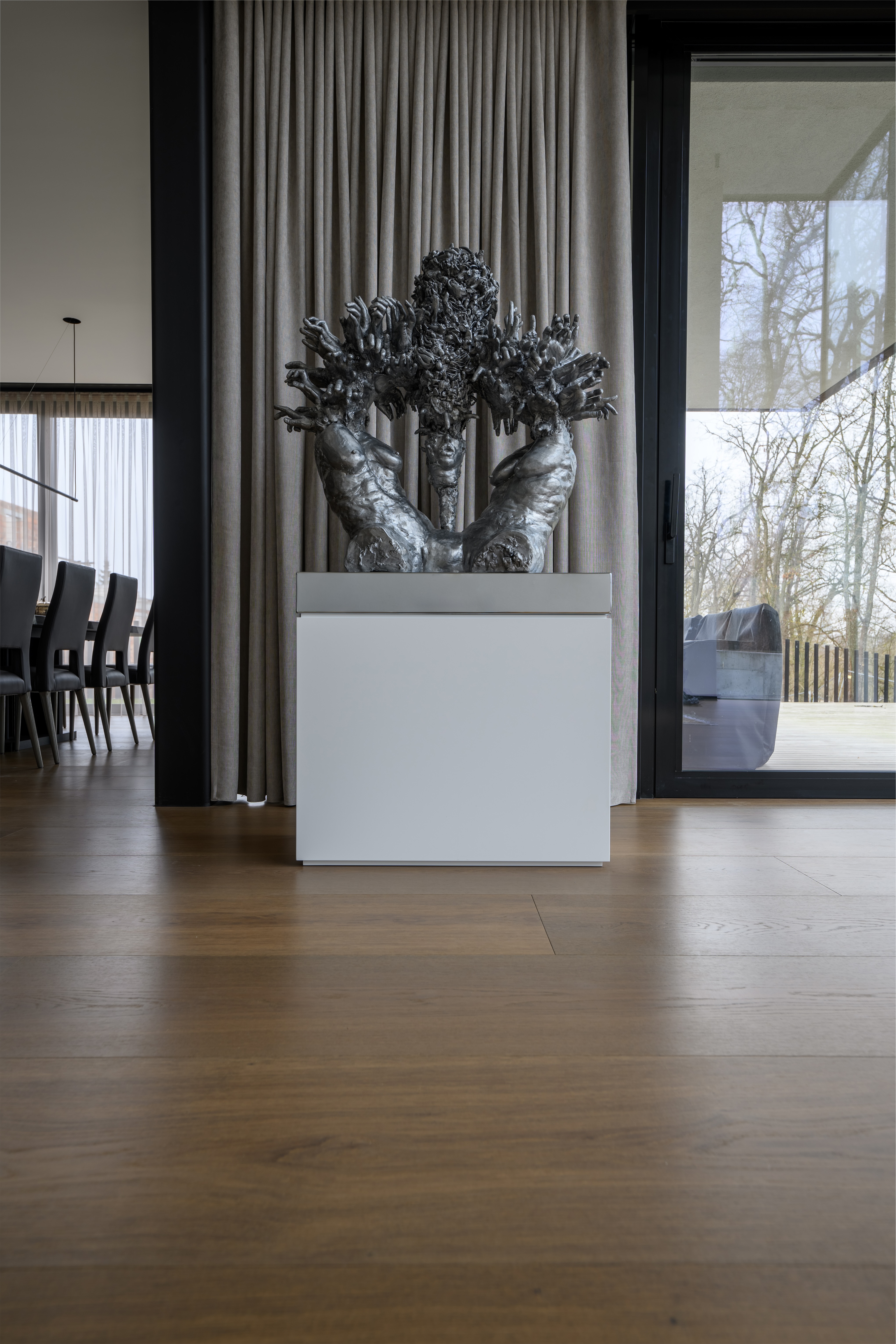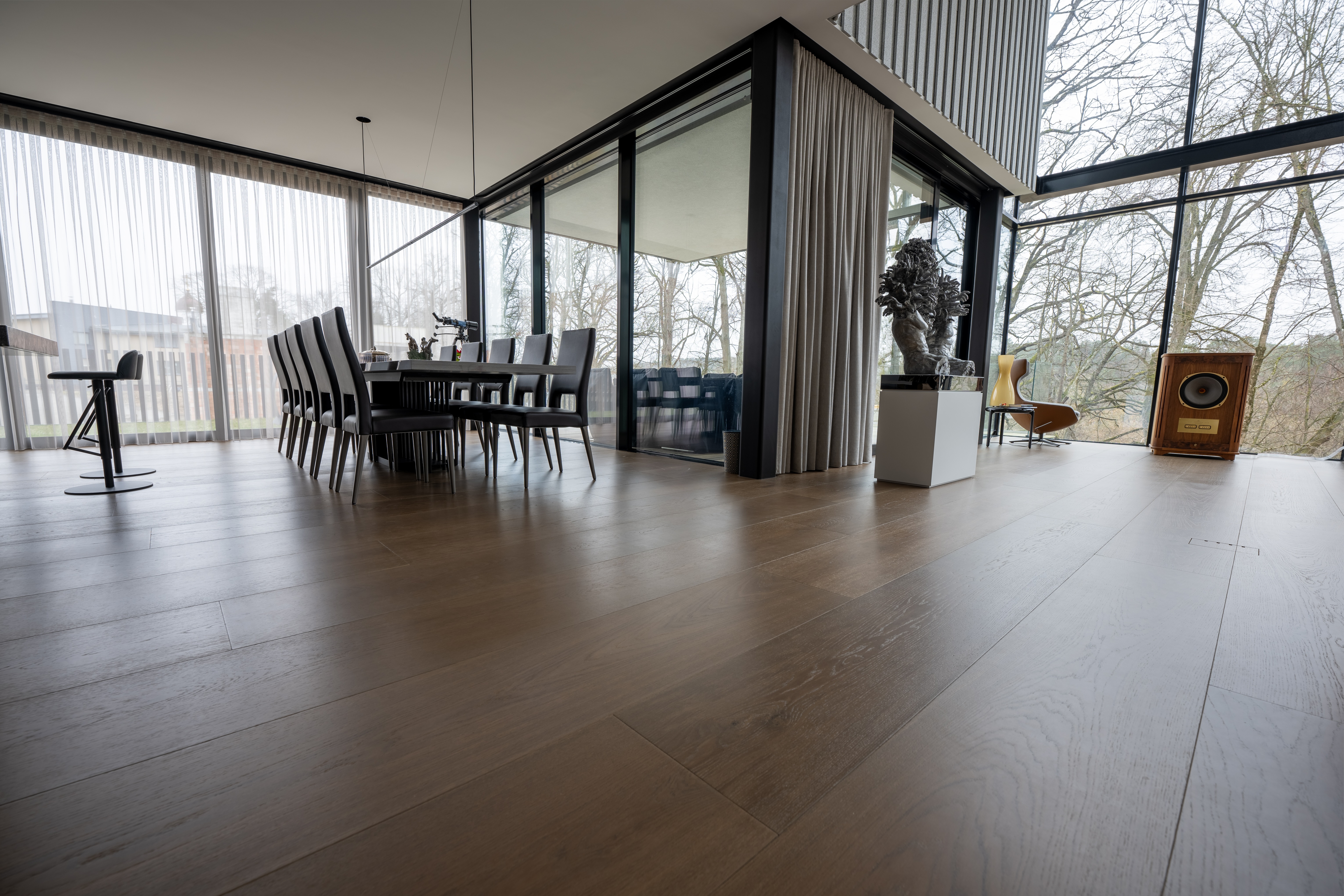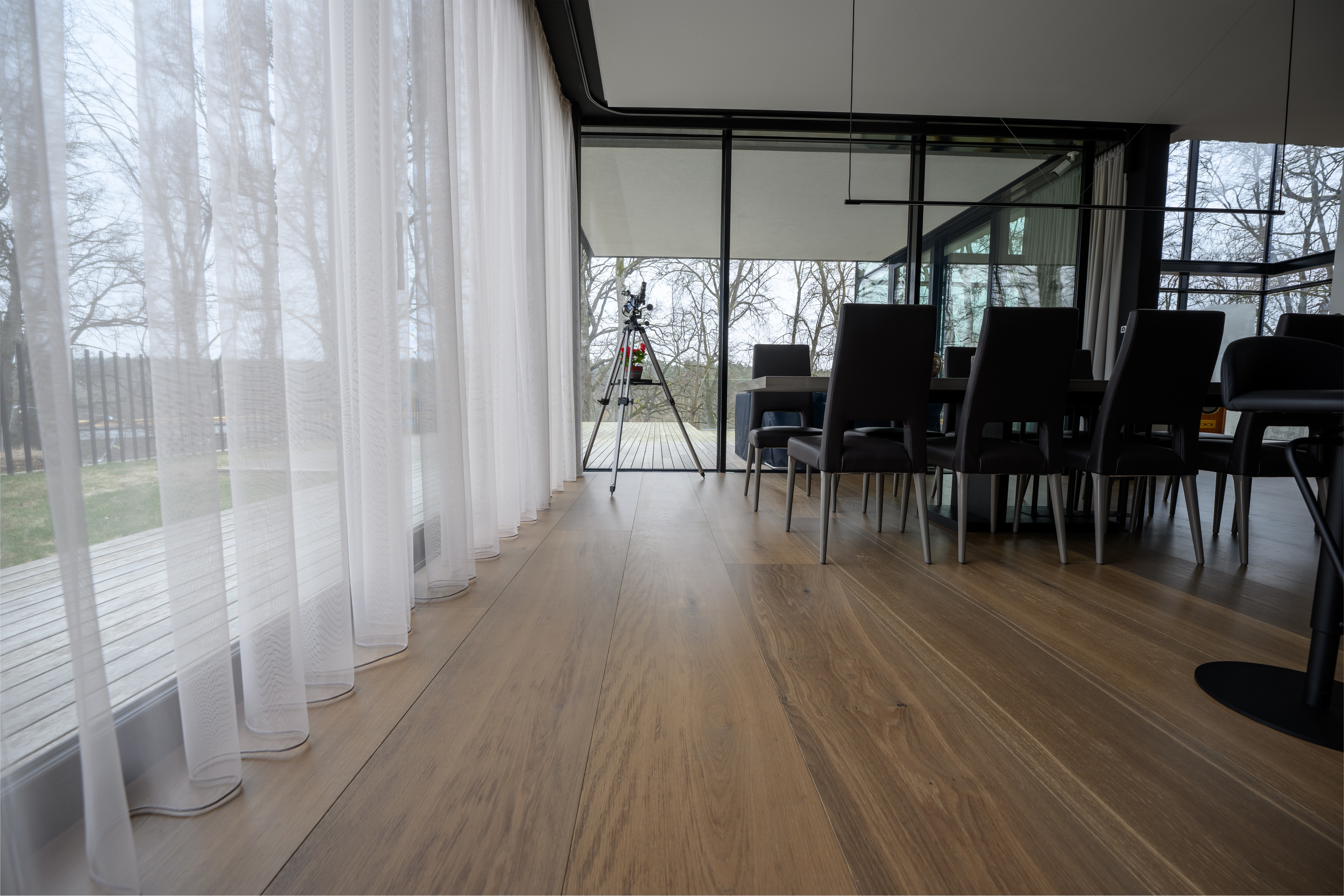 Tumma lankkuparketti on ylellisen minimalistisen draaman valinta. Leveät pitkät tummat tammilankkukoot (150-300 mm) luovat tilaan syvyyttä ja modernia luksusta joka on sekä rauhallinen että vaikuttava, ei huuda mutta vangitsee katseen. Frevini Studio tumma tammi lankkuparketti yhdistää minimalismin puhtaan geometrian dramaattiseen sävyyn: vähän saumoja, yhtenäinen pinta, mutta tummuus joka saa vaaleille seinille ja kalusteille täydellisen kontrastin. Saa sisustuksen näyttämään arvokaammalta ja harkitummalta. Tumma tammilankku sopii moderneihin lofteihin, minimalistiseen luksukseen, mustavalkosisustukseen, japanilaiseen zeniin ja boutique-hotellitunnelmaan, ja se on käytännöllisempi kuin luulet: naarmut kätkeytyvät ja lattialämmitys toimii täydellisesti. Leveydet 150-300 mm. FSC-sertifioitu, M1-päästöluokitus, 15v takuu. Tilaa ilmaiset näytepalat kotiin ja uskalla kokeilla minimalistista luksusta. Tumma lankkuparketti on statement joka erottaa kotisi ja kasvattaa sen arvoa.